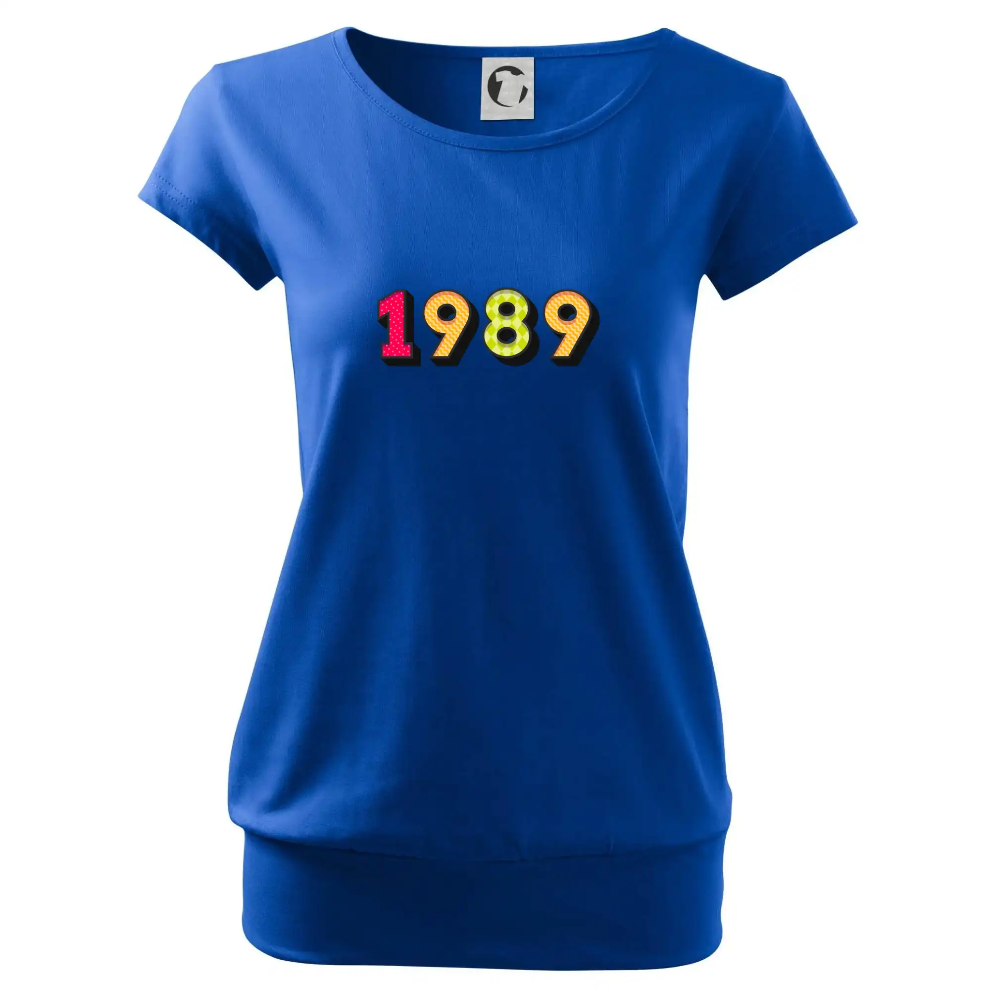 Trendové dámske tričko s veľmi krátkym rukávom, voľnejšieho strihu, v dolnom kraji všité do širokého lemu. Okrúhly priekrčník s úzkym lemom zo zhodného materiálu.