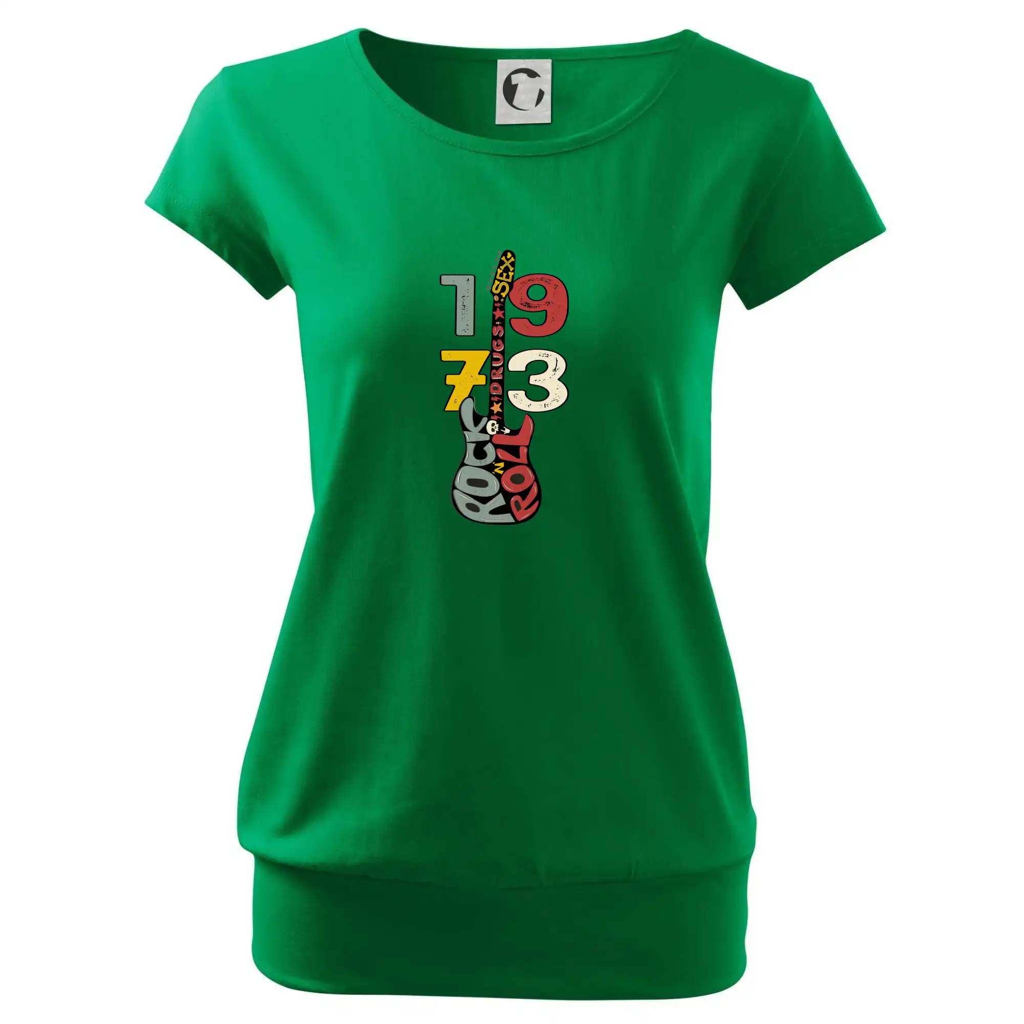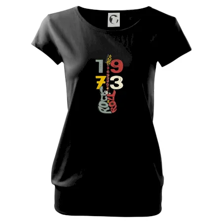 Trendové dámske tričko s veľmi krátkym rukávom, voľnejšieho strihu, v dolnom kraji všité do širokého lemu. Okrúhly priekrčník s úzkym lemom zo zhodného materiálu.