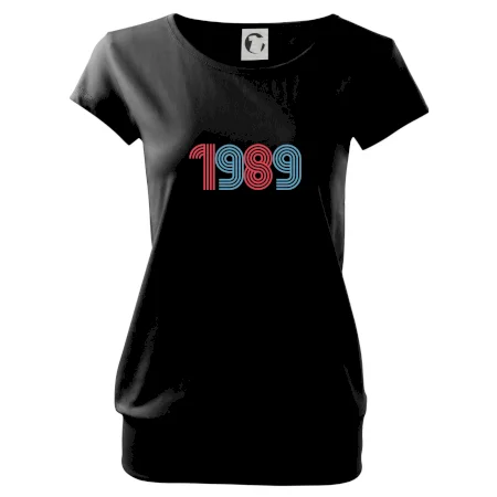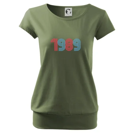 Trendové dámske tričko s veľmi krátkym rukávom, voľnejšieho strihu, v dolnom kraji všité do širokého lemu. Okrúhly priekrčník s úzkym lemom zo zhodného materiálu.