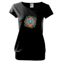 Trendové dámske tričko s veľmi krátkym rukávom, voľnejšieho strihu, v dolnom kraji všité do širokého lemu. Okrúhly priekrčník s úzkym lemom zo zhodného materiálu.