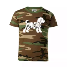 Detské tričko strednej gramáže s bočnými švami. Úzky priekrčník s prídavkom 5% elastanu. Vnútorná časť zadného priekrčníka začistená tkanou páskou. Spevnený ramenný šev.