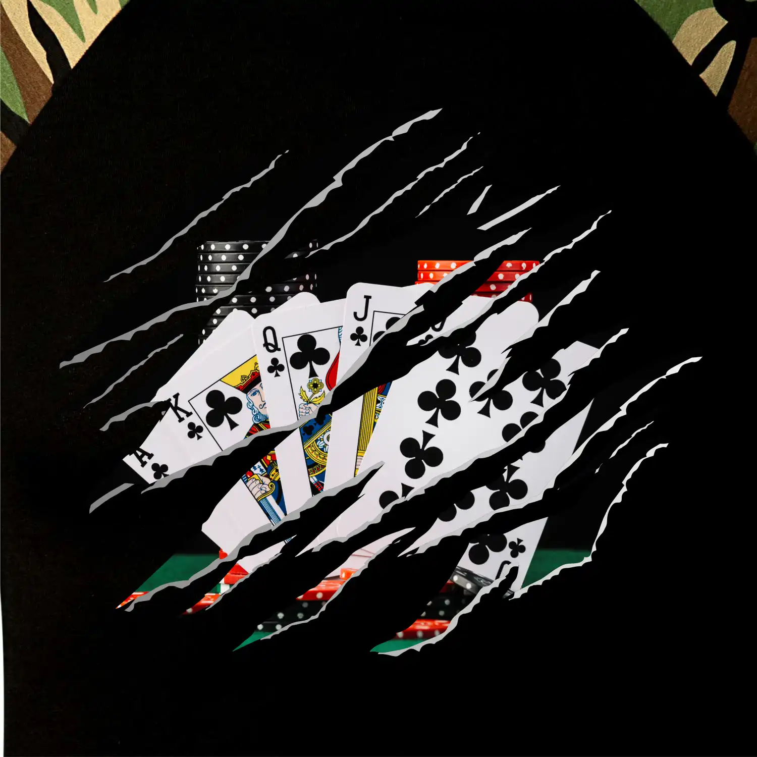Roztrhané triko - poker - Camouflage LS