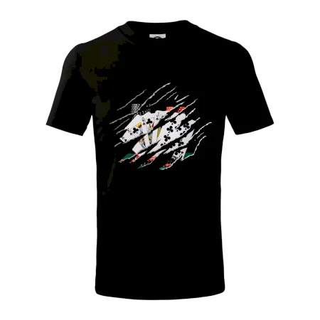 Detské tričko strednej gramáže s bočnými švami. Úzky priekrčník s prídavkom 5% elastanu. Vnútorná časť zadného priekrčníka začistená tkanou páskou. Spevnený ramenný šev.