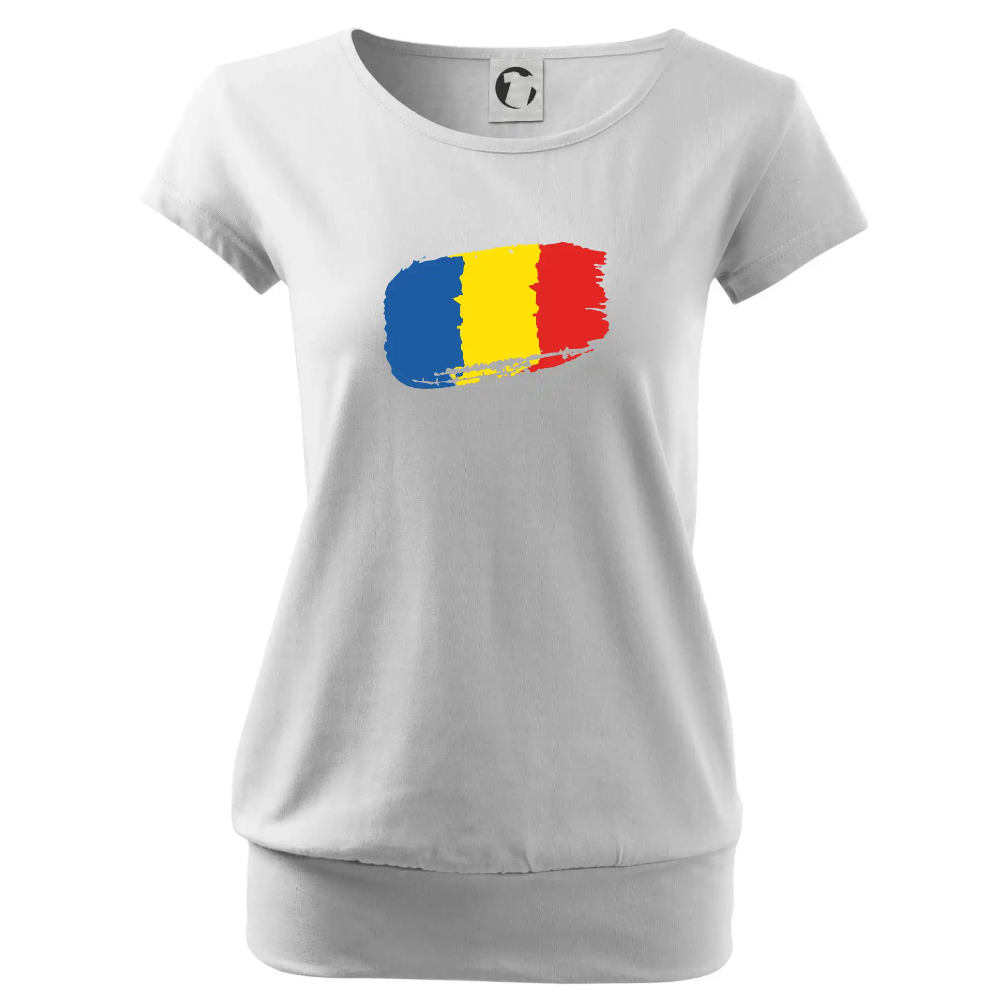 Trendové dámske tričko s veľmi krátkym rukávom, voľnejšieho strihu, v dolnom kraji všité do širokého lemu. Okrúhly priekrčník s úzkym lemom zo zhodného materiálu.