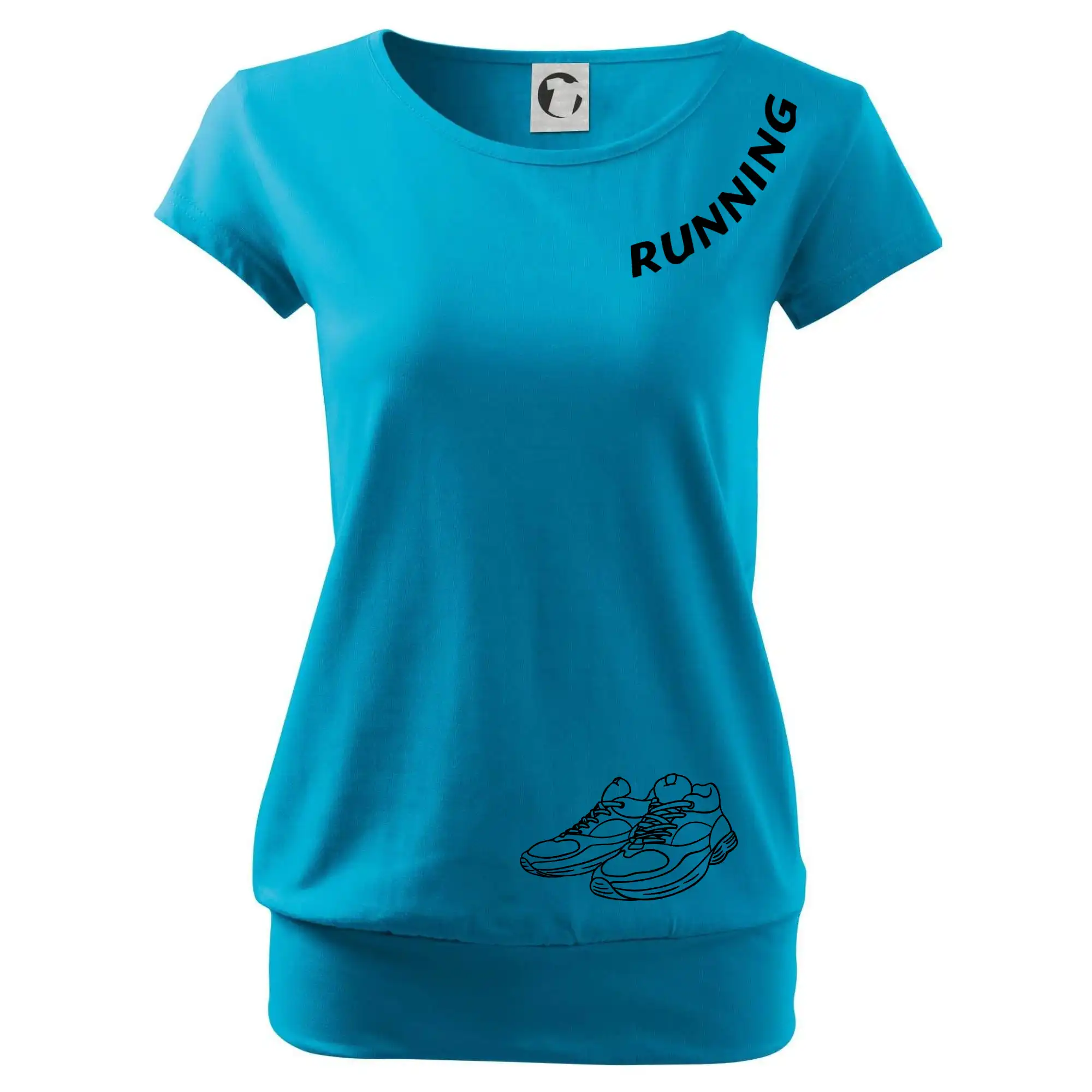 Trendové dámske tričko s veľmi krátkym rukávom, voľnejšieho strihu, v dolnom kraji všité do širokého lemu. Okrúhly priekrčník s úzkym lemom zo zhodného materiálu.