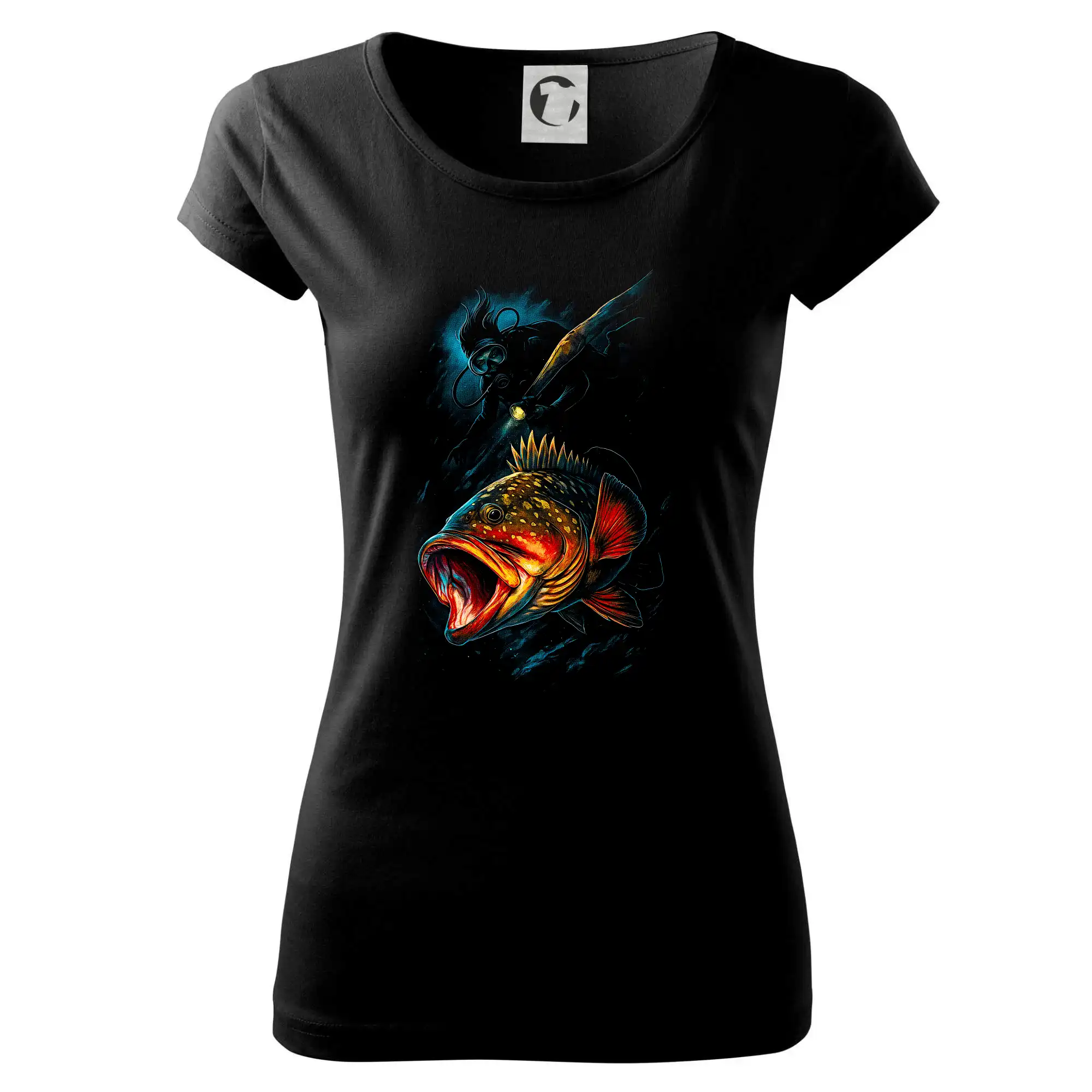 Ryba s otvorenou papuľou a potápač