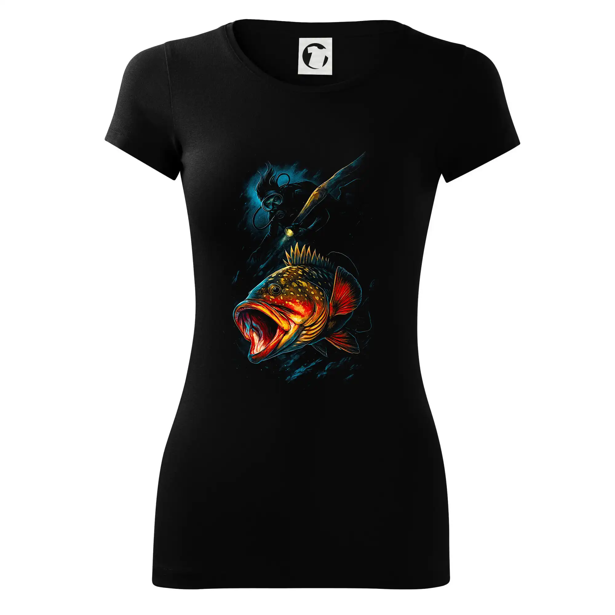 Ryba s otvorenou papuľou a potápač