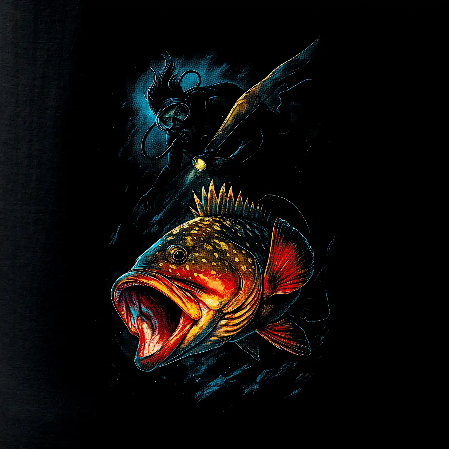 Ryba s otvorenou papuľou a potápač
