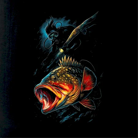Ryba s otvorenou papuľou a potápač