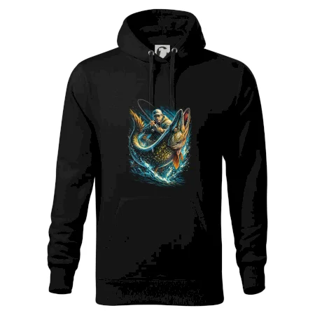 Rybár a obria ryba - Mikina pánska Cape s kapucňou