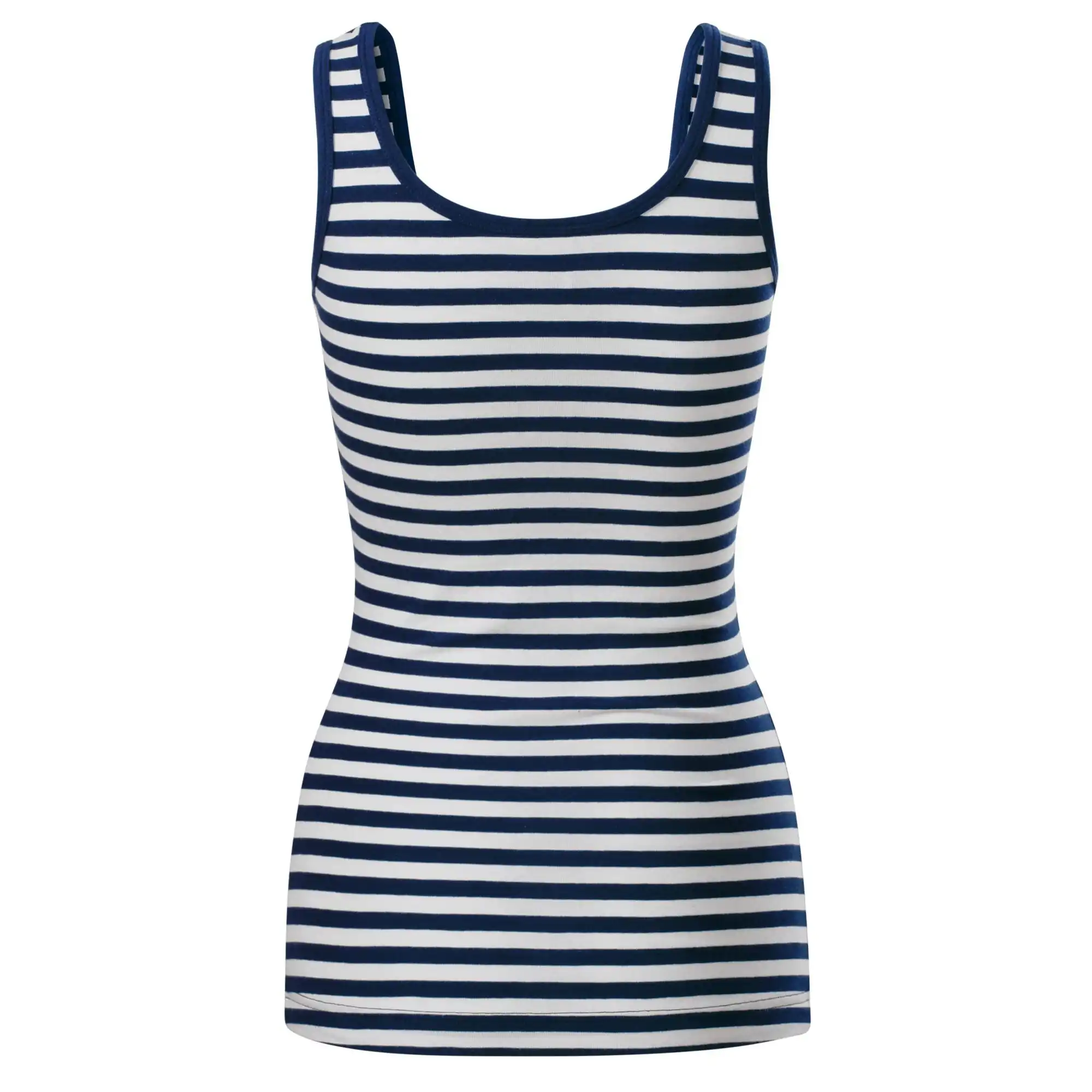 Dámske tielko MALFINI Sailor Top 806 prináša ikonický námornícky vzhľad s bielo-modrými pruhmi, ideálne na letné dni, výlety alebo ležérne outfity. Priliehavý strih s bočnými švami zvýrazňuje ženskú siluetu, zatiaľ čo hlbší okrúhly výstrih a širšie ramienka dodávajú moderný a svieži vzhľad. Vďaka prídavku elastanu si tielko zachováva tvar a je mäkké, priedušné a príjemné na dotyk.
