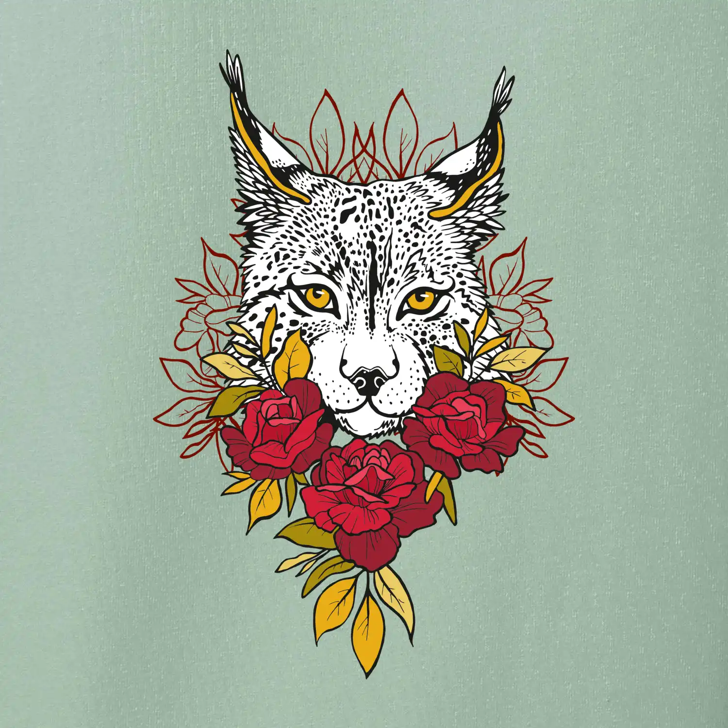 Rys s červenými ružami (Pecka design)