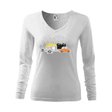 Tolerantnejšie priliehavý dámsky strih, ktorý je vhodný pre všetky typy postavy, ideálna dĺžka rukávov a konzervatívny výstrih zakončený rebrovaním, ktoré skvele drží tvar.
