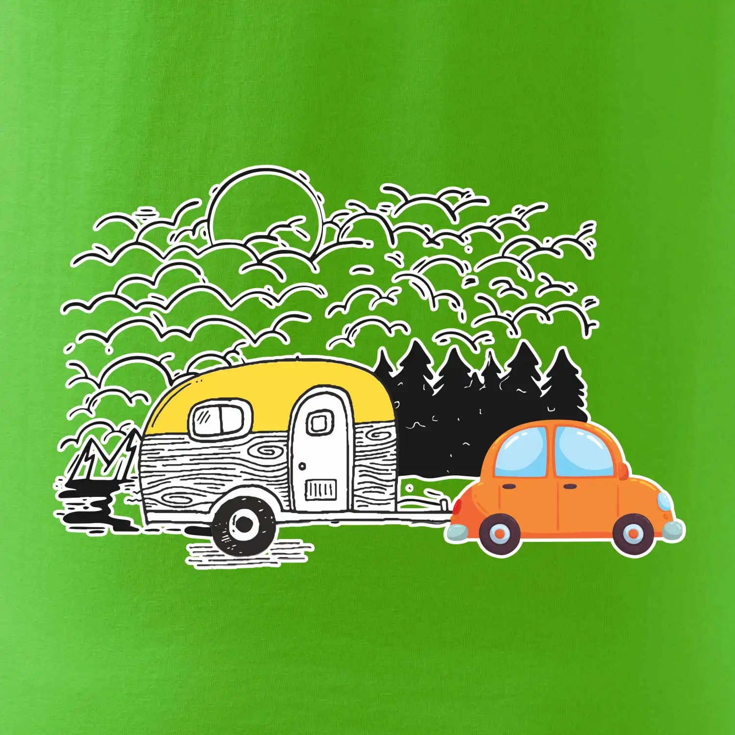 Pohoda a voľnosť. Poznáš ten pocit, keď sa len tak zoberieš a ideš si kam chceš? Pri obytňáku alebo karavane môžeš robiť parádu v skvelom tričku. Tento motív je vhodný tiež na vankúš ako dekorácia do obytňáku alebo karavanu.