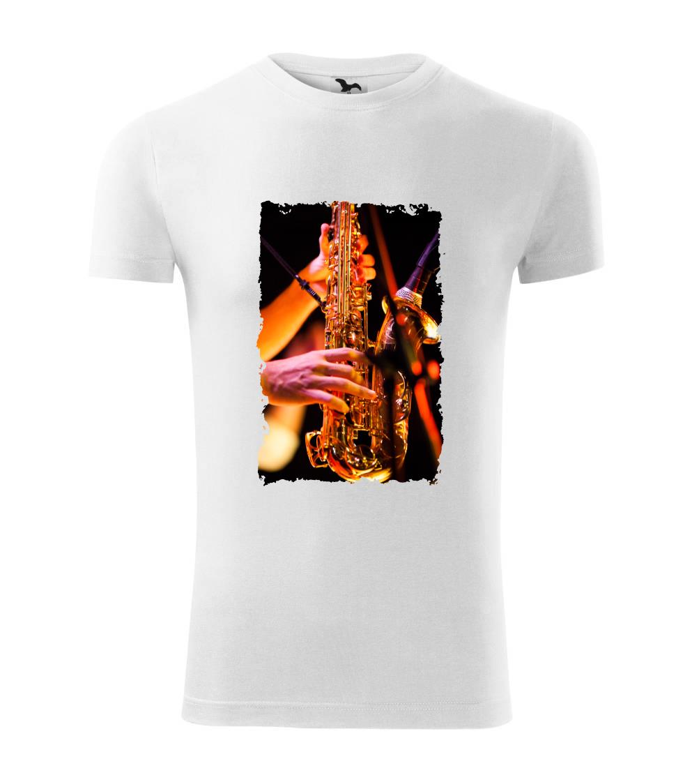 Tričko so saxofónom pre milovníkov hudby.
