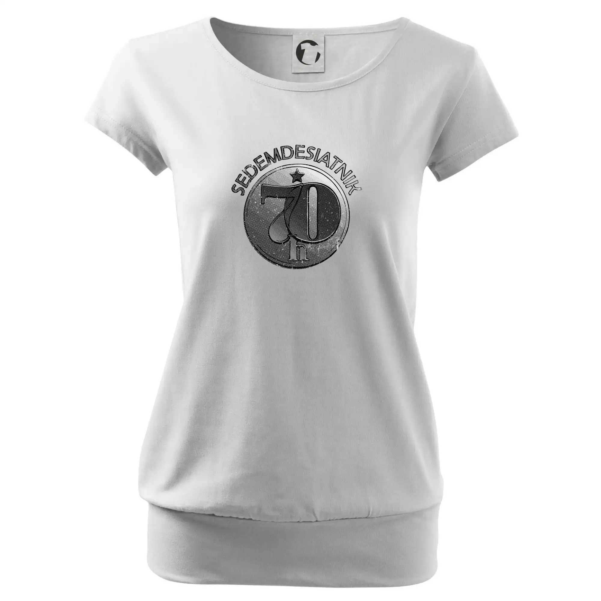 Trendové dámske tričko s veľmi krátkym rukávom, voľnejšieho strihu, v dolnom kraji všité do širokého lemu. Okrúhly priekrčník s úzkym lemom zo zhodného materiálu.