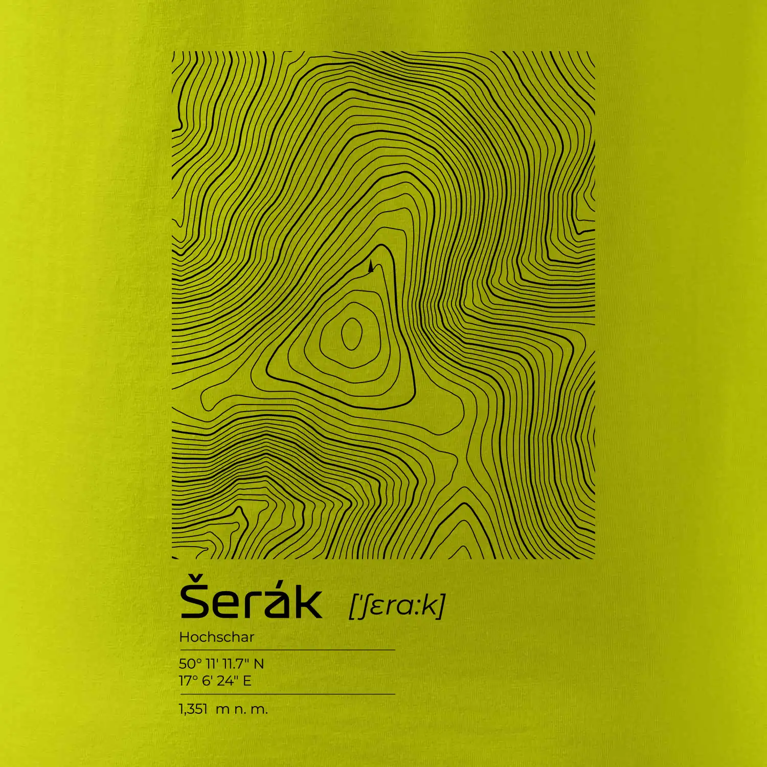 Šerák - vrstevnice v obdĺžniku