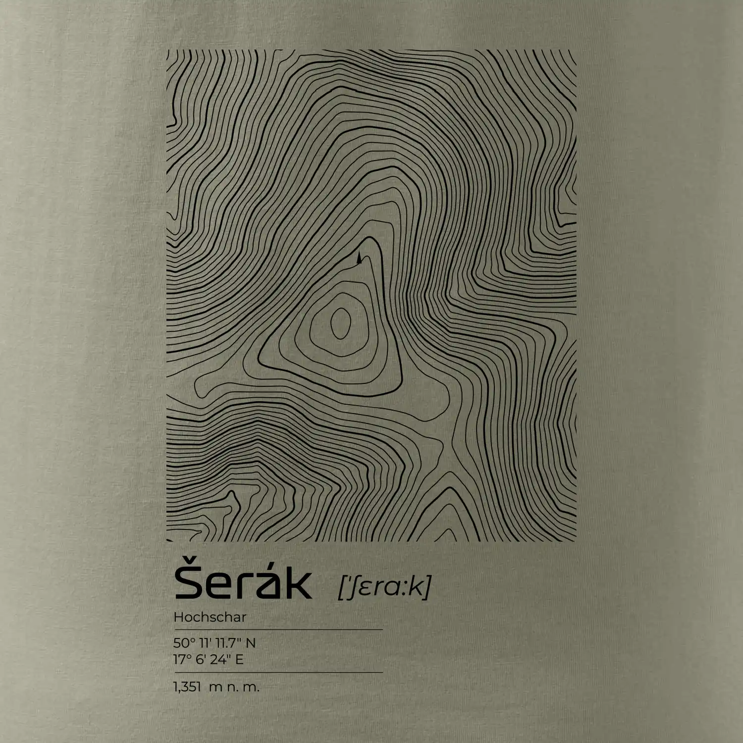 Šerák - vrstevnice v obdĺžniku