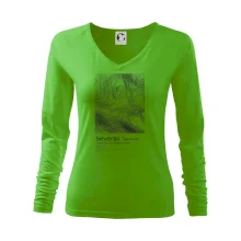 Tolerantnejšie priliehavý dámsky strih, ktorý je vhodný pre všetky typy postavy, ideálna dĺžka rukávov a konzervatívny výstrih zakončený rebrovaním, ktoré skvele drží tvar.