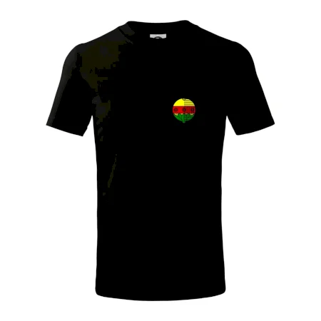Detské tričko strednej gramáže s bočnými švami. Úzky priekrčník s prídavkom 5% elastanu. Vnútorná časť zadného priekrčníka začistená tkanou páskou. Spevnený ramenný šev.