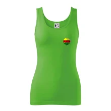 Ramená spevnené všitým prúžkom. Tričko siaha do hĺbky bokov. Silikónová úprava zabezpečuje mäkký a splývavý omak.