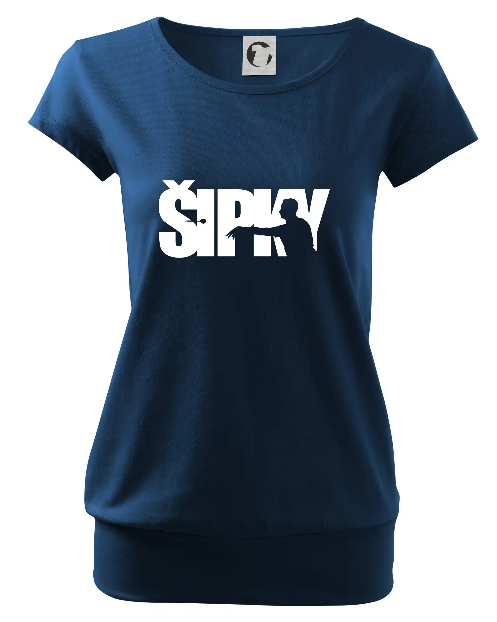 Trendové dámske tričko s veľmi krátkym rukávom, voľnejšieho strihu, v dolnom kraji všité do širokého lemu. Okrúhly priekrčník s úzkym lemom zo zhodného materiálu.