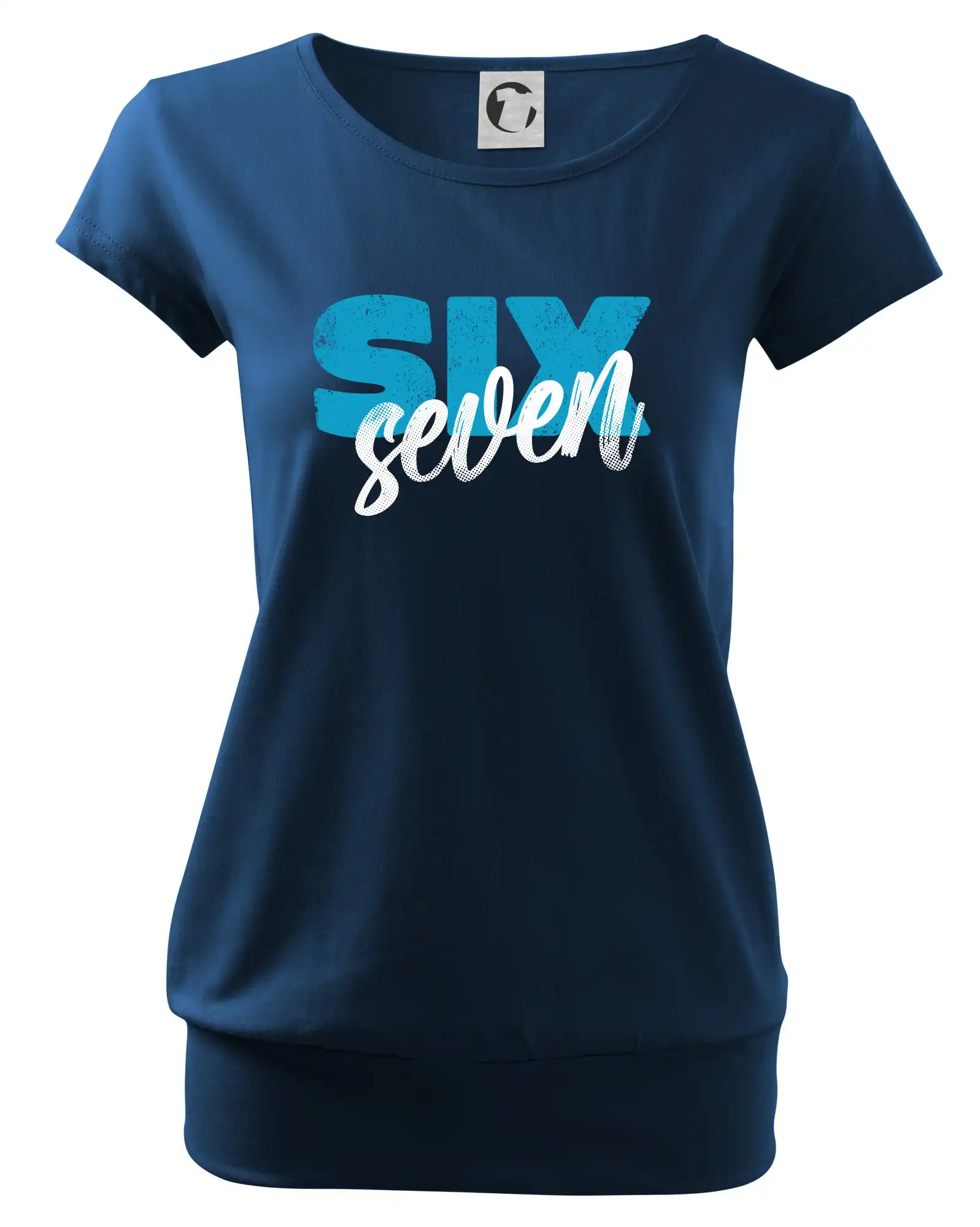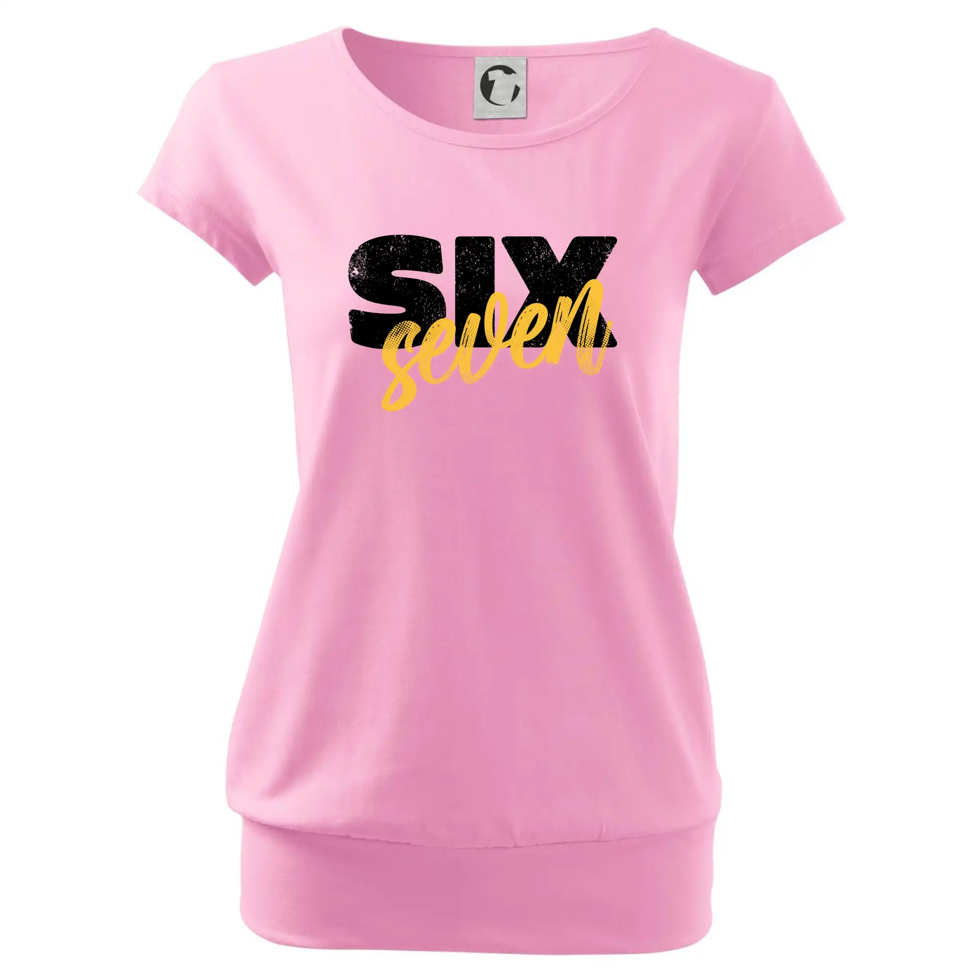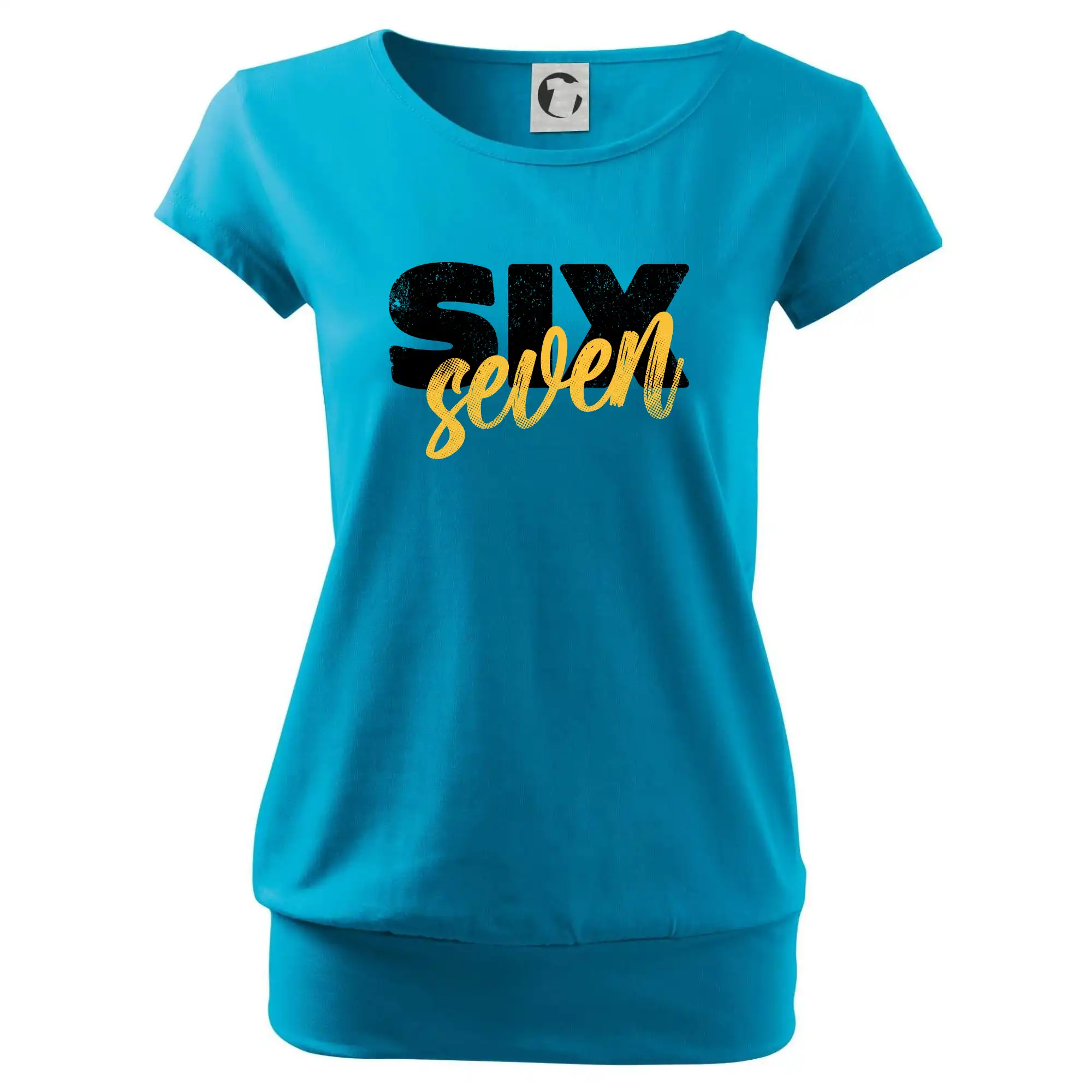 Trendové dámske tričko s veľmi krátkym rukávom, voľnejšieho strihu, v dolnom kraji všité do širokého lemu. Okrúhly priekrčník s úzkym lemom zo zhodného materiálu.