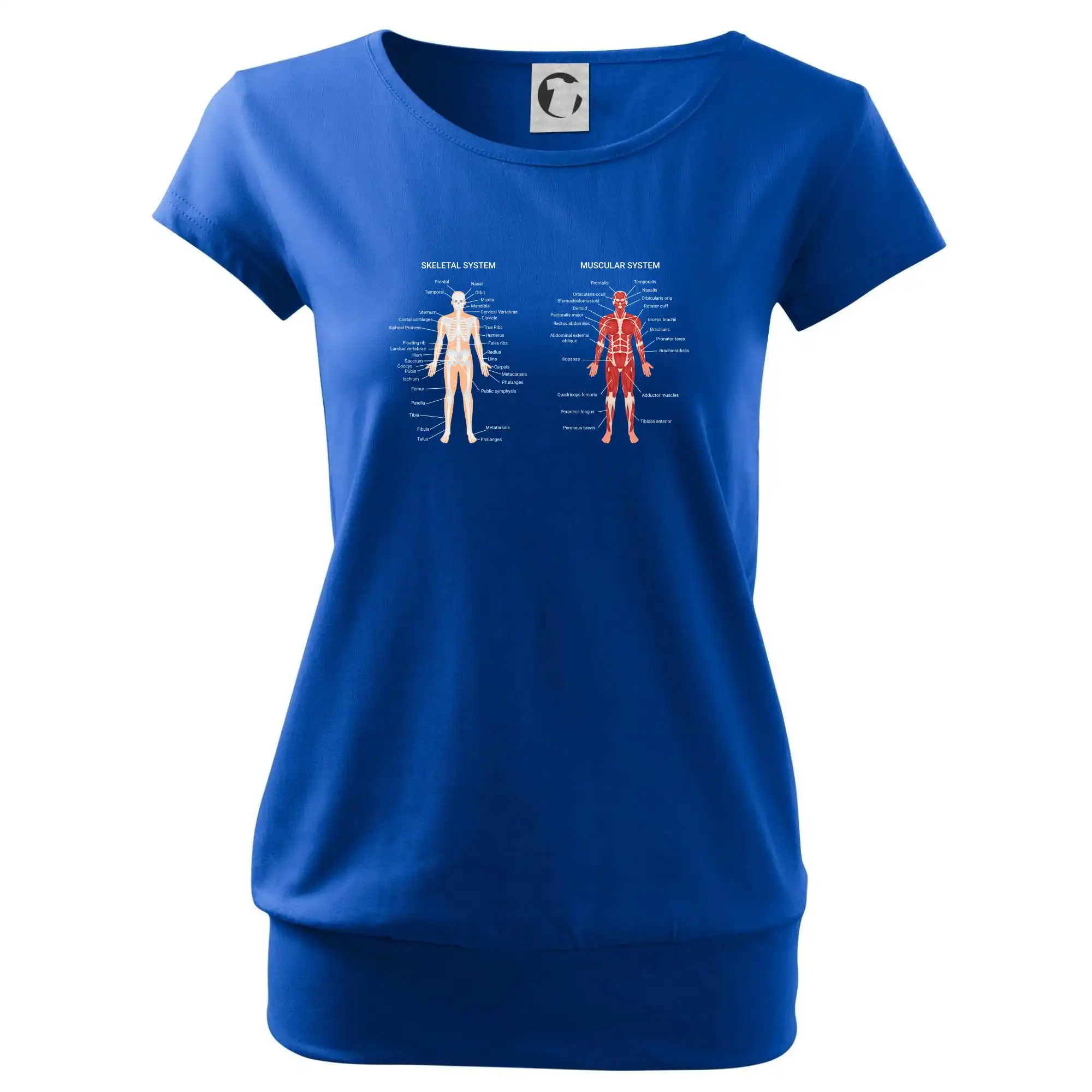 Trendové dámske tričko s veľmi krátkym rukávom, voľnejšieho strihu, v dolnom kraji všité do širokého lemu. Okrúhly priekrčník s úzkym lemom zo zhodného materiálu.
