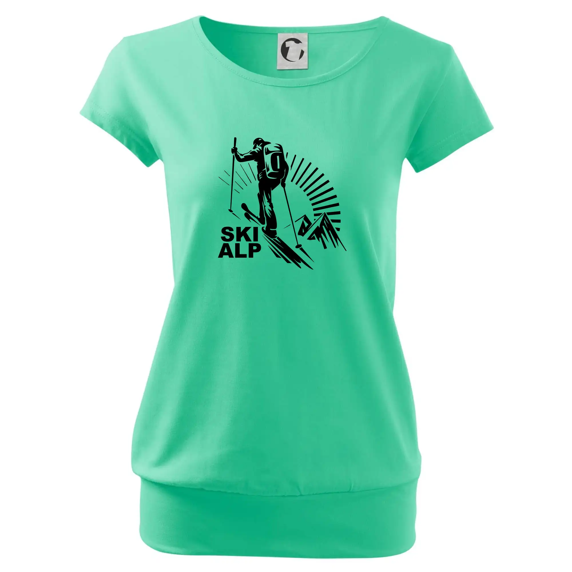 Trendové dámske tričko s veľmi krátkym rukávom, voľnejšieho strihu, v dolnom kraji všité do širokého lemu. Okrúhly priekrčník s úzkym lemom zo zhodného materiálu.