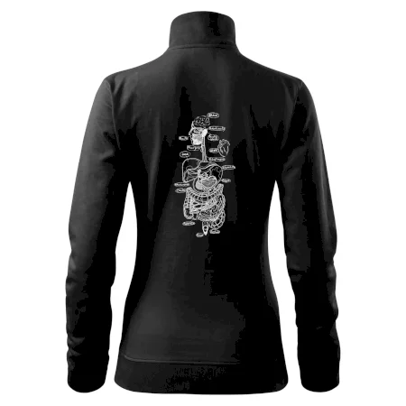 Dámska mikina MALFINI Viva 409 je navrhnutá pre ženy, ktoré ocenia spojenie praktickosti a moderného dizajnu. Polopriliehavý strih tvarovaný bočnými dielmi zvýrazňuje ženskú siluetu, zatiaľ čo celoprepínací strieborný zips a vyšší stojačik z rebrového úpletu dodávajú elegantný vzhľad. Mikina je vybavená dvoma našitými vreckami typu „klokanka“ a vďaka rýchloschnúcemu strečovému materiálu poskytuje pohodlie a zachováva tvar. Počesaná vnútorná strana zabezpečuje teplo a príjemný pocit pri nosení.