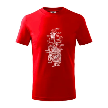 Detské tričko strednej gramáže s bočnými švami. Úzky priekrčník s prídavkom 5% elastanu. Vnútorná časť zadného priekrčníka začistená tkanou páskou. Spevnený ramenný šev.