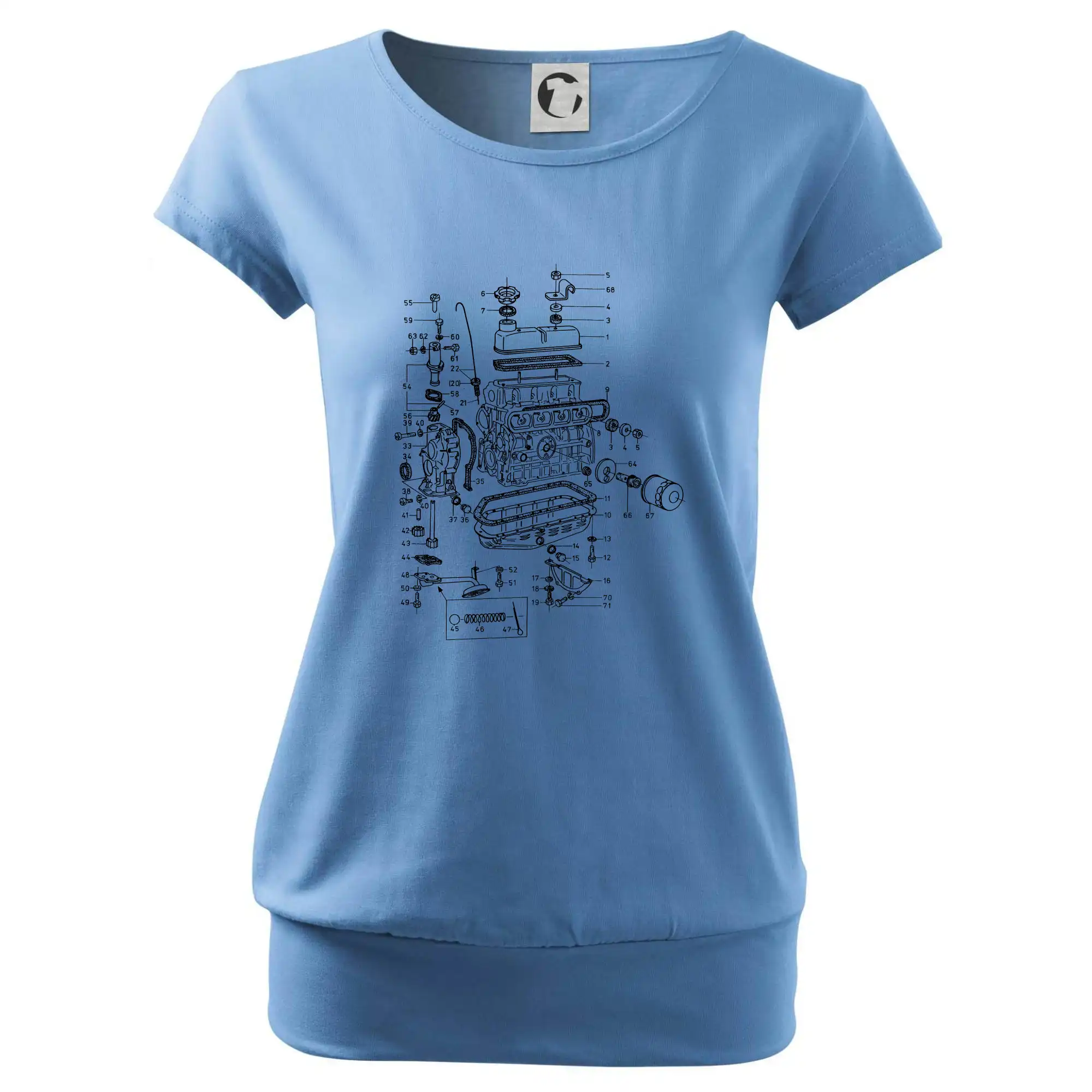 Trendové dámske tričko s veľmi krátkym rukávom, voľnejšieho strihu, v dolnom kraji všité do širokého lemu. Okrúhly priekrčník s úzkym lemom zo zhodného materiálu.