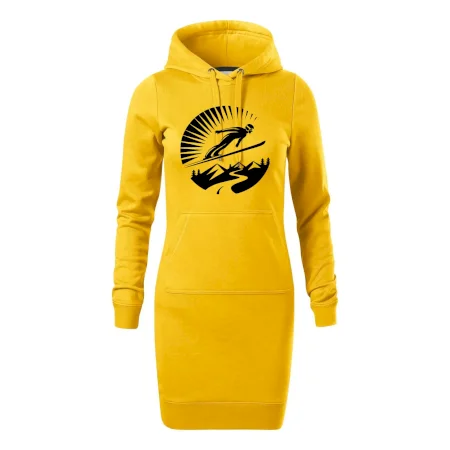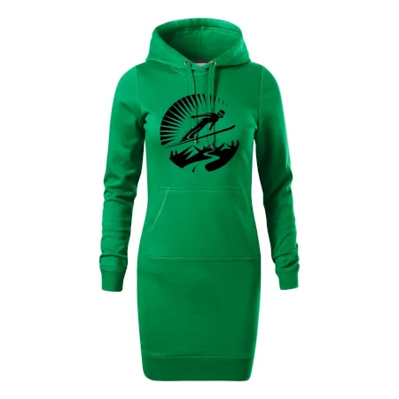 Dámske mikinové šaty MALFINI Snap 419 sú ideálnou voľbou pre ženy, ktoré hľadajú pohodlný a štýlový kúsok na voľný čas alebo každodenné nosenie. Ľahko vypasovaný strih s bočnými švami podčiarkuje ženskú siluetu, zatiaľ čo kapucňa s podšívkou a sťahovacou šnúrkou dodáva ležérny vzhľad. Šaty majú dĺžku nad kolená a sú vybavené našitým vreckom v štýle „klokanky“. Materiál je mäkký a príjemný na dotyk grâce à smesi bavlny a polyesteru s nepočesanou vnútornou stranou.