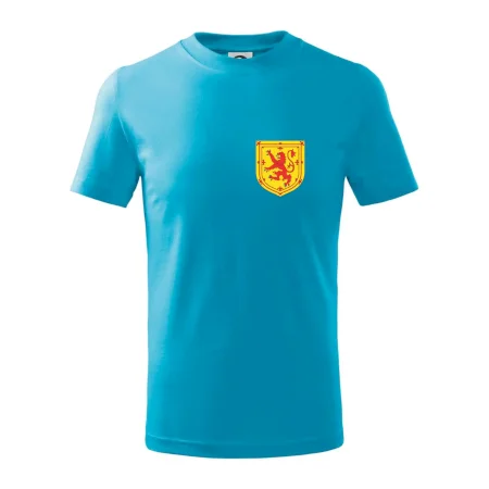 Detské tričko strednej gramáže s bočnými švami. Úzky priekrčník s prídavkom 5% elastanu. Vnútorná časť zadného priekrčníka začistená tkanou páskou. Spevnený ramenný šev.