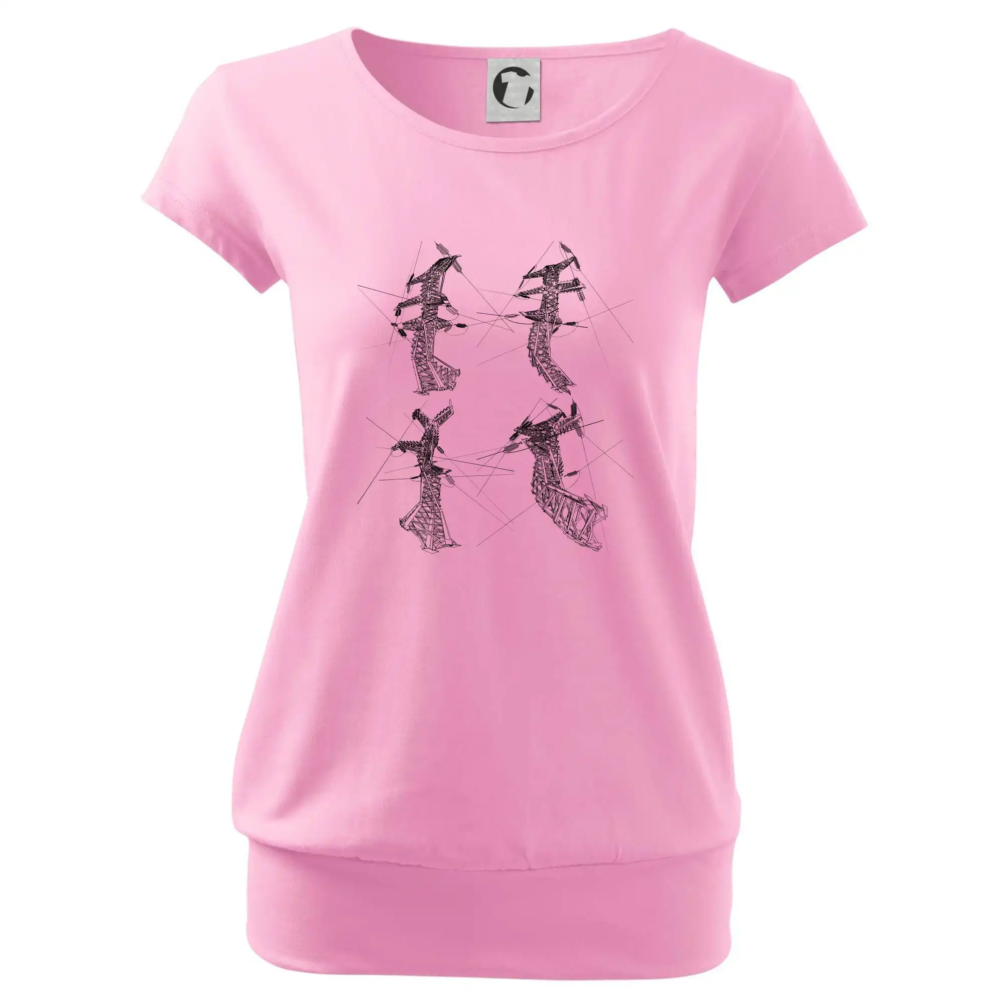 Trendové dámske tričko s veľmi krátkym rukávom, voľnejšieho strihu, v dolnom kraji všité do širokého lemu. Okrúhly priekrčník s úzkym lemom zo zhodného materiálu.