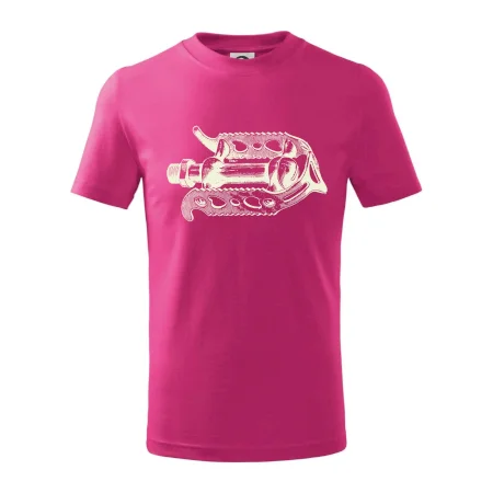 Detské tričko strednej gramáže s bočnými švami. Úzky priekrčník s prídavkom 5% elastanu. Vnútorná časť zadného priekrčníka začistená tkanou páskou. Spevnený ramenný šev.