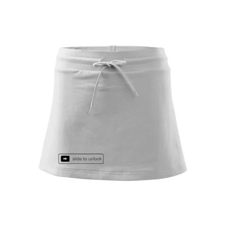 Dámska kraťasová sukňa MALFINI Two in One 604 je perfektnou kombináciou sukne a šortiek, ideálna na šport, voľný čas alebo ležérne nosenie. Vďaka prídavku elastanu si sukňa zachováva tvar a ponúka pohodlie pri pohybe. Krátky strih do tvaru „A“ a široký elastický pás so sťahovacou šnúrkou zabezpečujú voľnosť a prispôsobenie.