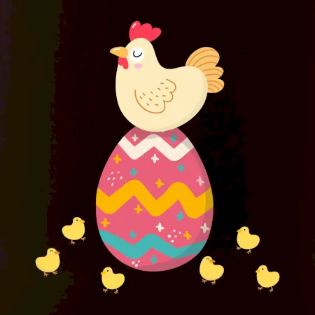 Sliepka sediaca na veľkonočnom vajci