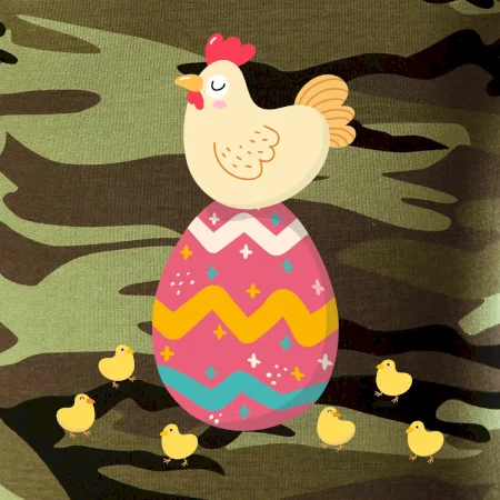 Sliepka sediaca na veľkonočnom vajci