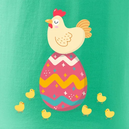 Sliepka sediaca na veľkonočnom vajci