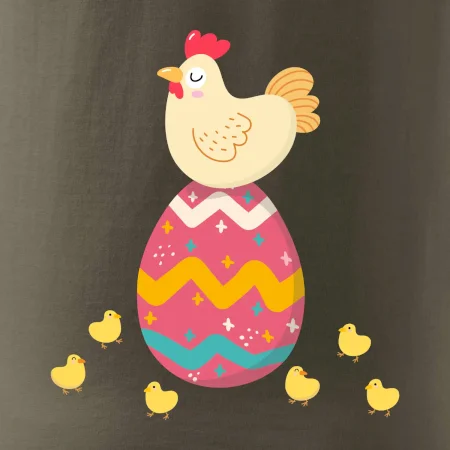Sliepka sediaca na veľkonočnom vajci