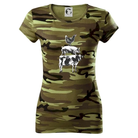 Tričko so sliepkou, prasaťom a kravou je tričko pre správneho farmára. Ak si aj Ty jeden z nich, tak toto tričko je presne pre Teba! Tento a mnoho ďalších designov nájdeš jedine u nás. Vhodné ako darček pre mäsiara.