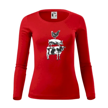 Tričko so sliepkou, prasaťom a kravou je tričko pre správneho farmára. Ak si aj Ty jeden z nich, tak toto tričko je presne pre Teba! Tento a mnoho ďalších designov nájdeš jedine u nás. Vhodné ako darček pre mäsiara.