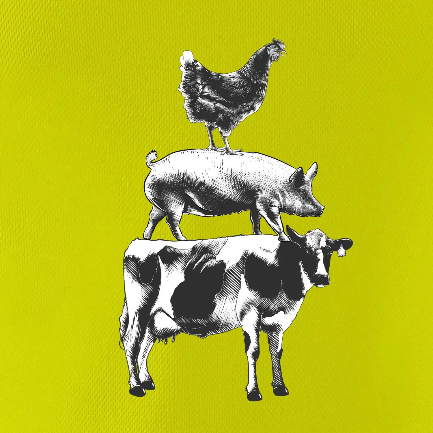 Tričko so sliepkou, prasaťom a kravou je tričko pre správneho farmára. Ak si aj Ty jeden z nich, tak toto tričko je presne pre Teba! Tento a mnoho ďalších designov nájdeš jedine u nás. Vhodné ako darček pre mäsiara.