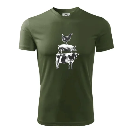 Tričko so sliepkou, prasaťom a kravou je tričko pre správneho farmára. Ak si aj Ty jeden z nich, tak toto tričko je presne pre Teba! Tento a mnoho ďalších designov nájdeš jedine u nás. Vhodné ako darček pre mäsiara.