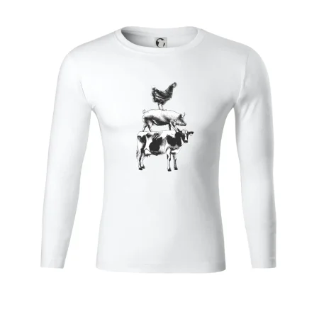 Tričko so sliepkou, prasaťom a kravou je tričko pre správneho farmára. Ak si aj Ty jeden z nich, tak toto tričko je presne pre Teba! Tento a mnoho ďalších designov nájdeš jedine u nás. Vhodné ako darček pre mäsiara.