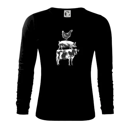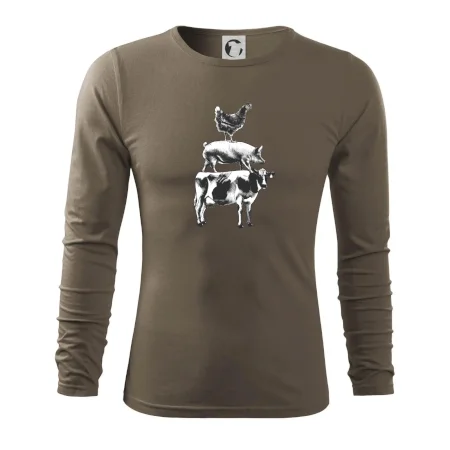 Tričko so sliepkou, prasaťom a kravou je tričko pre správneho farmára. Ak si aj Ty jeden z nich, tak toto tričko je presne pre Teba! Tento a mnoho ďalších designov nájdeš jedine u nás. Vhodné ako darček pre mäsiara.