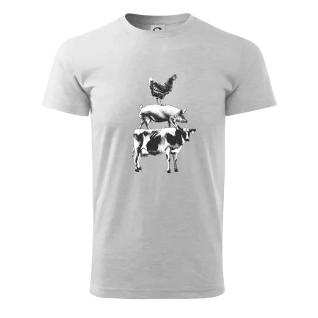 Tričko so sliepkou, prasaťom a kravou je tričko pre správneho farmára. Ak si aj Ty jeden z nich, tak toto tričko je presne pre Teba! Tento a mnoho ďalších designov nájdeš jedine u nás. Vhodné ako darček pre mäsiara.