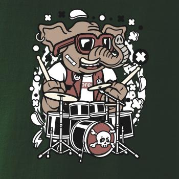 Tričko so slonom, ktorý hraje na bicie, je vhodný darček pre bubeníka.