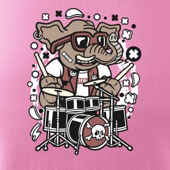 Tričko so slonom, ktorý hraje na bicie, je vhodný darček pre bubeníka.